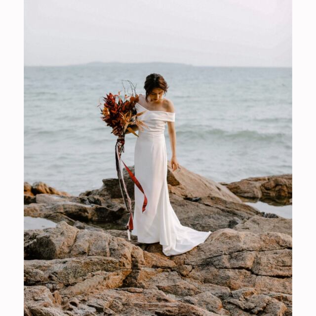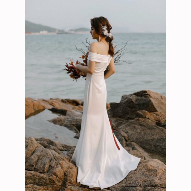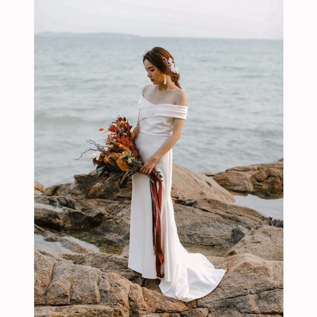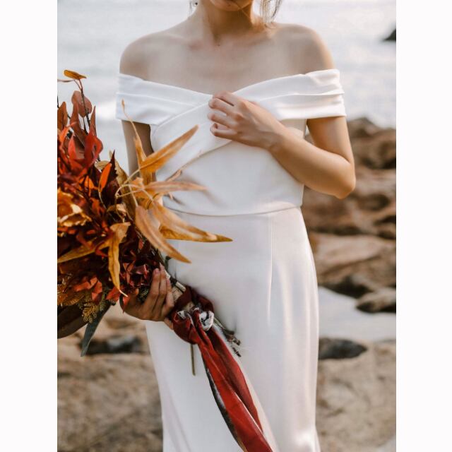 ウェディングドレス スレンダーライン オフショルダー 二次会 花嫁 結婚式