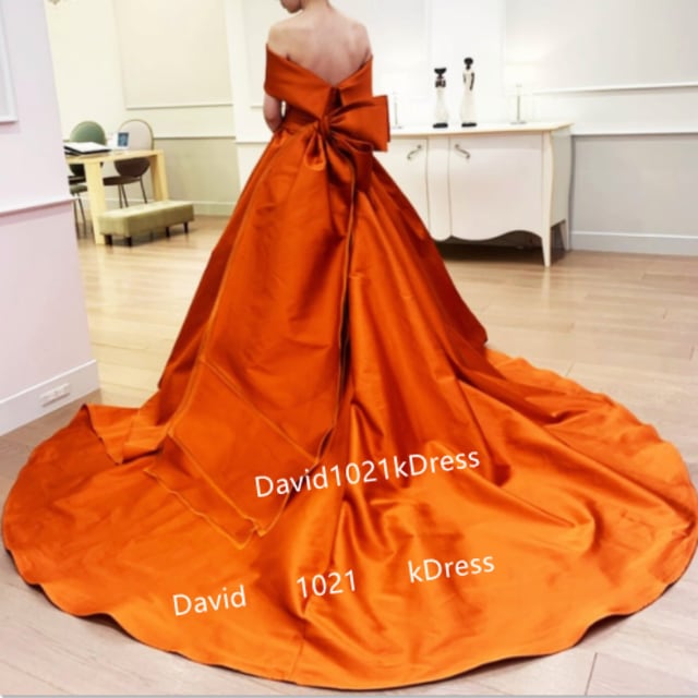 高品質! ウエディングドレス 取り外しオフショルダー 濃いオレンジ