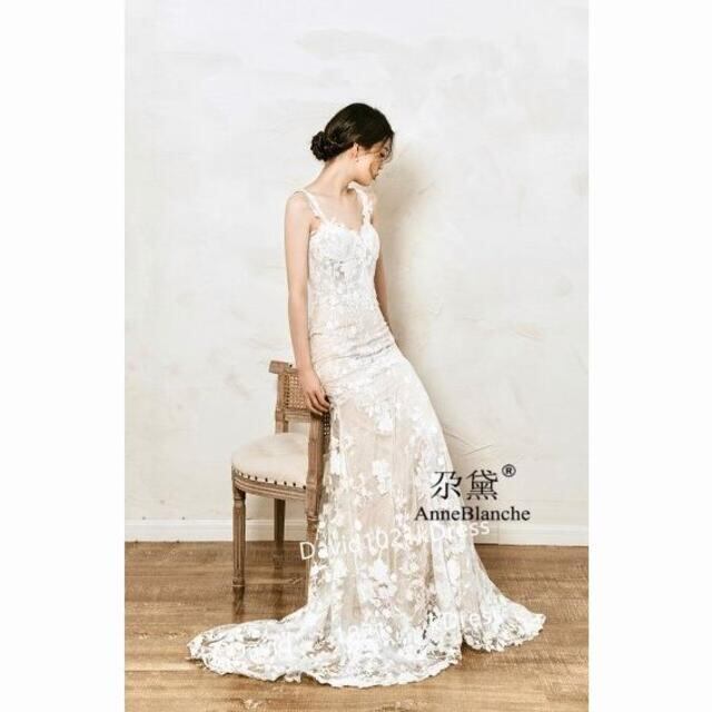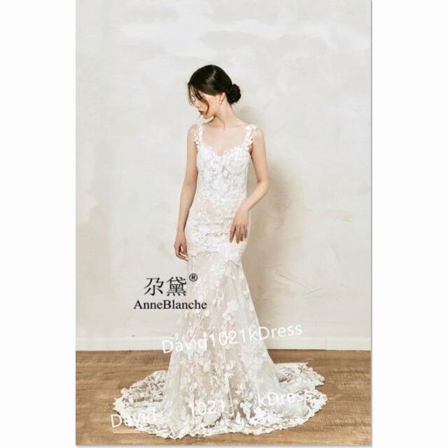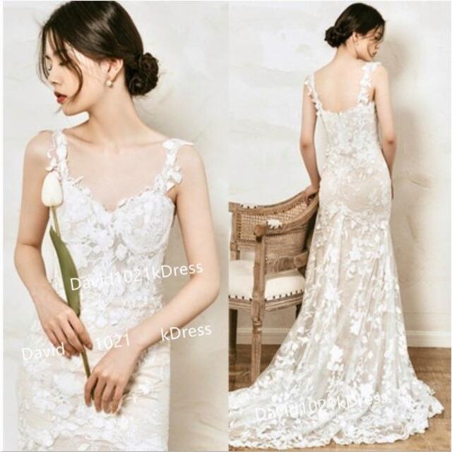 キャミソール 3D立体レース刺繍 ウェディングドレス マーメイドライン