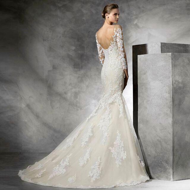 上品! ウエディングドレス オフショル 3D立体レース刺繍 マーメイドライ