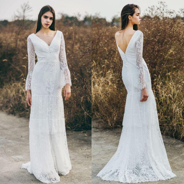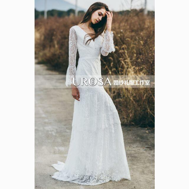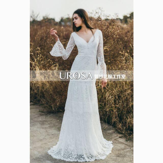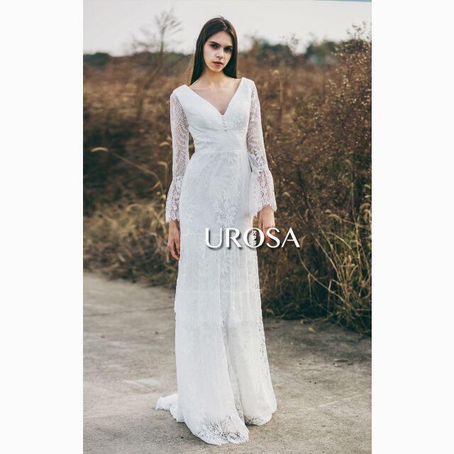 高品質! ウェディングドレス 3D立体レース刺繍 二次会 シースルー袖