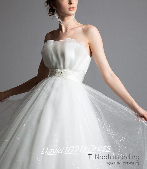 高品質! ウェディングドレス キラキラチュール ベアトップ 2次会