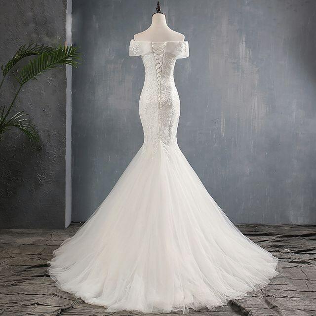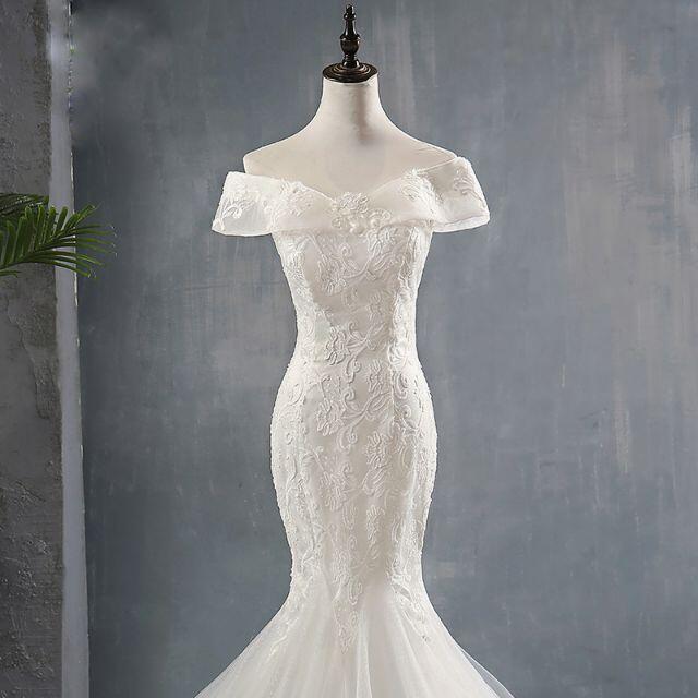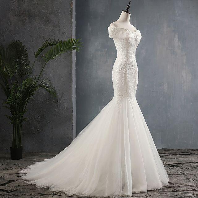 ウェディングドレス 3D立体レース刺繍 マーメイドライン オフショルダー