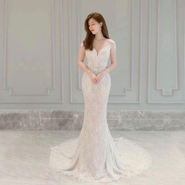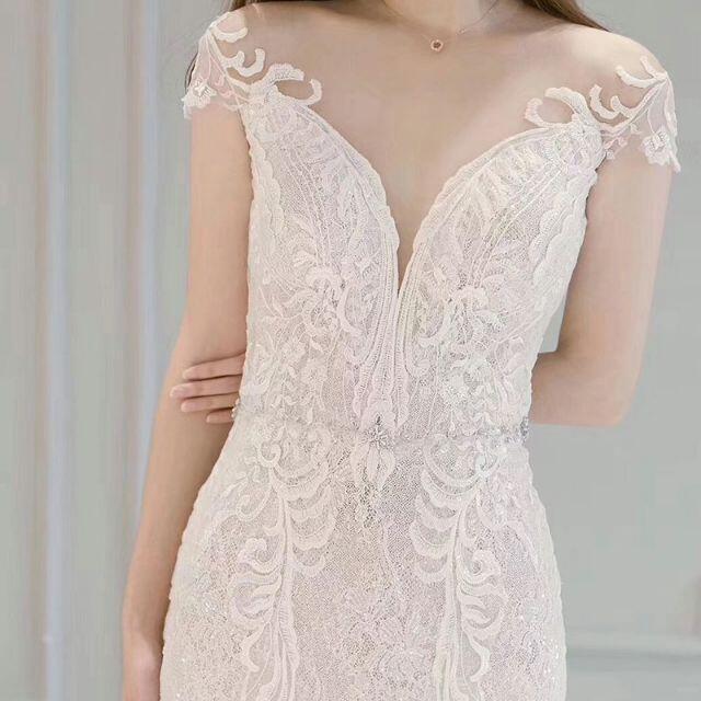 高品質! ウェディングドレス 3D立体レース刺繍 マーメイドライン
