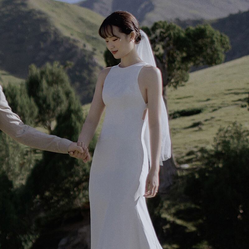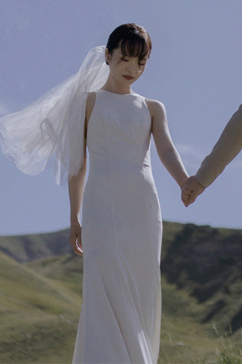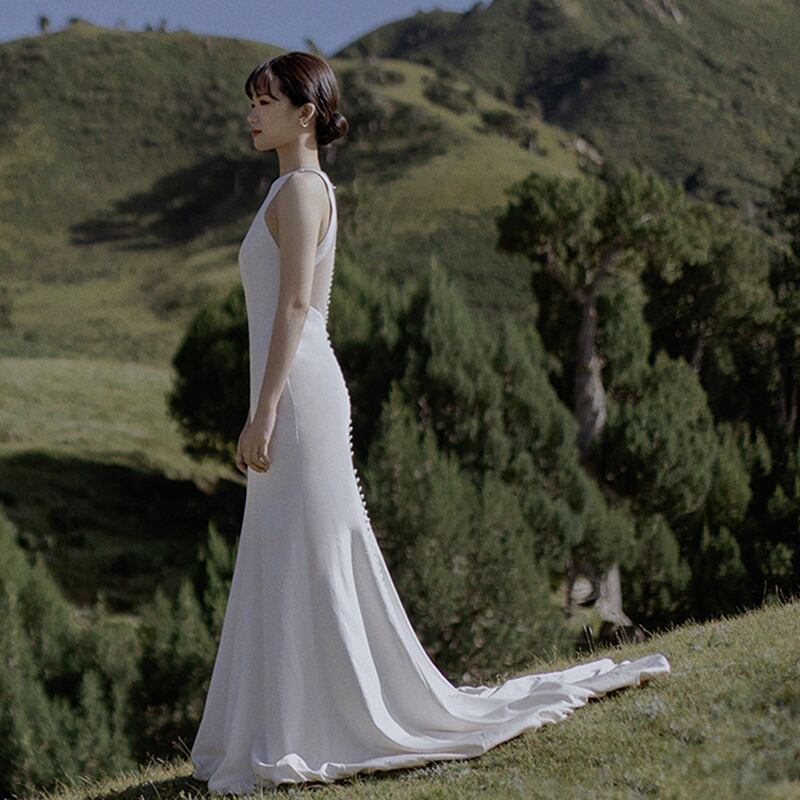 エレガント ウエディングドレス ホワイト マーメイドライン 前撮り ロケ撮 2次会