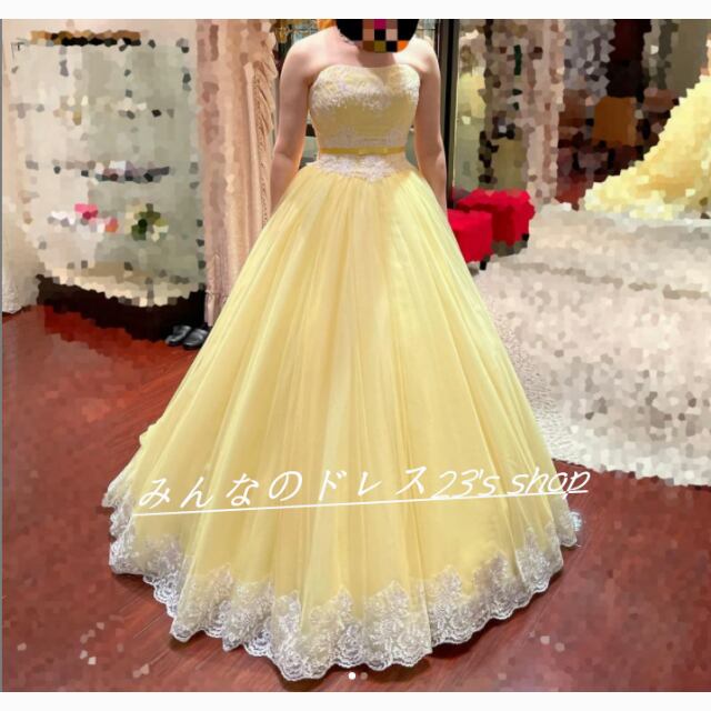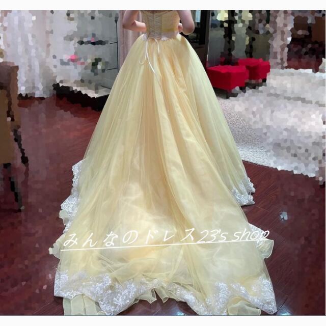 高品質! カラードレス イエロー 3D立体レース刺繍 花嫁