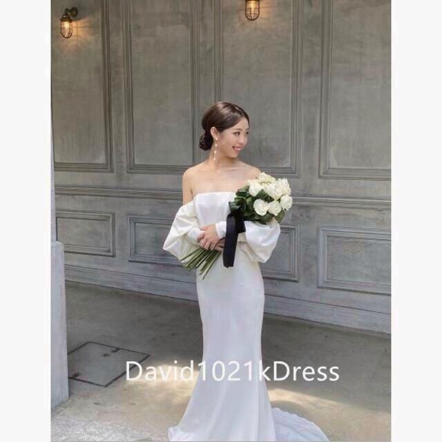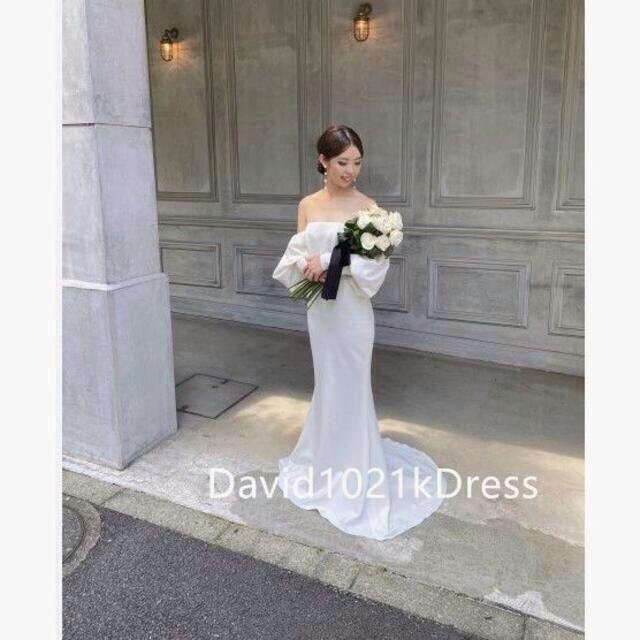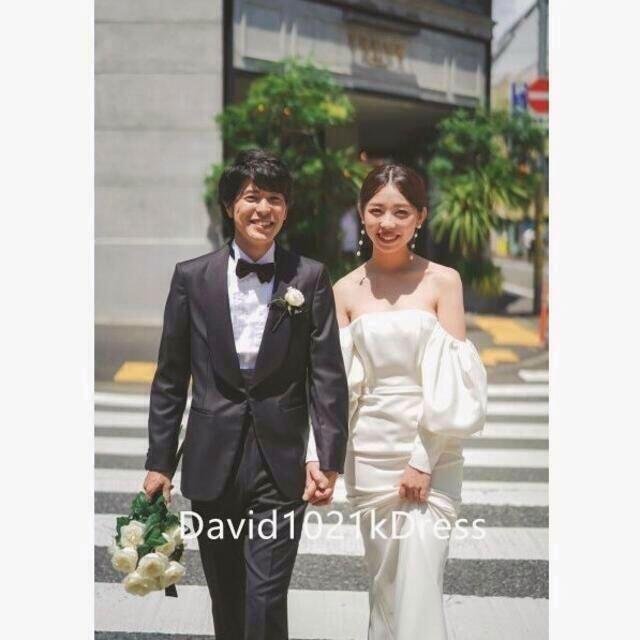トレンドのオフショルダー ウェディングドレス ベアトップ お呼ばれ/二次会