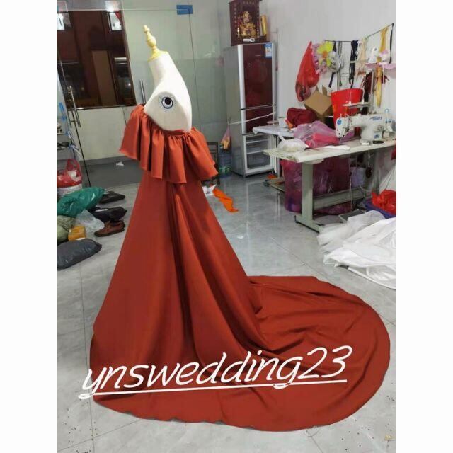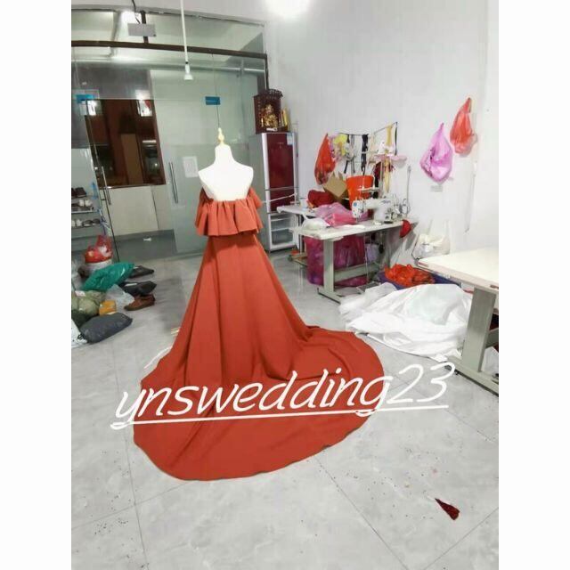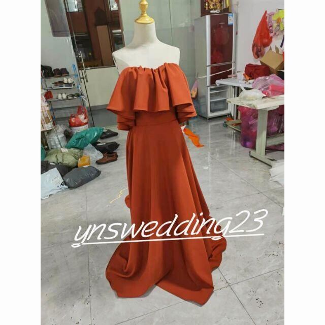 カラードレス テラコッタ色 オフショルダー ロングトレーン 前撮り