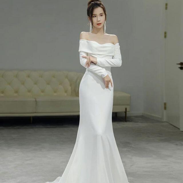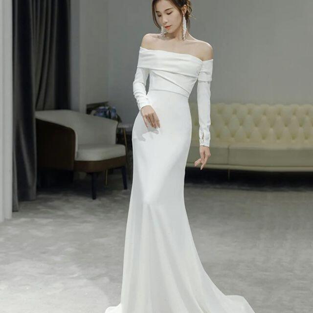 エレガント ウェディングドレス オフショルダー 長袖 前撮り