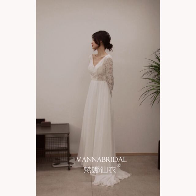 大好評中! レースウェディングドレス トレーン 背中見せ Vネックドレス
