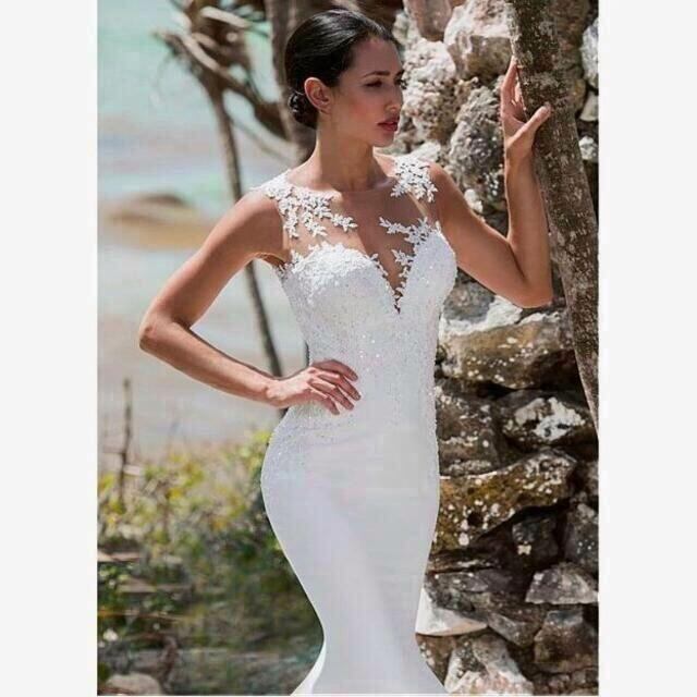 高品質! ウエディングドレス ホワイト マーメイドライン 繊細レース ロングトレ