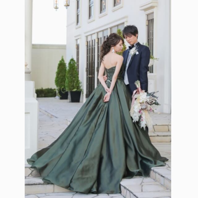 高品質! カラードレス 深めな緑 舞台ドレス お呼ばれ/二次会 発表会