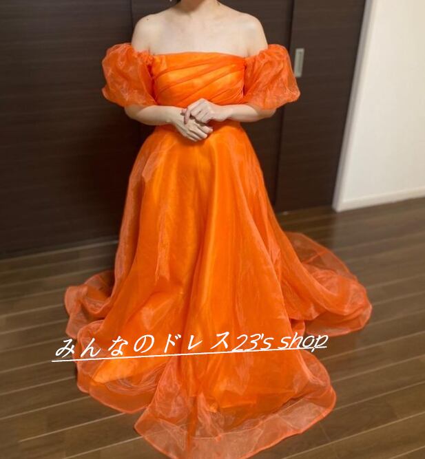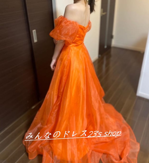 カラードレス オレンジ ベアトップ 2次会 パフスリーブ 前撮り