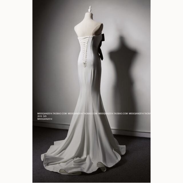 美品! パーティードレス ホワイト オフショル トレーン 編み上げ