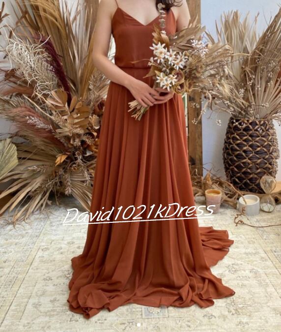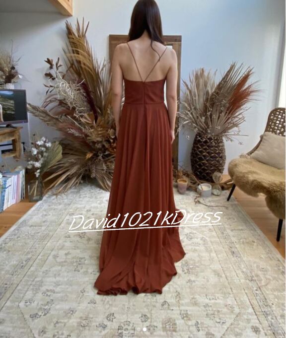 上品! パーティードレス テラコッタ色 背中見せ トレーン 2次会