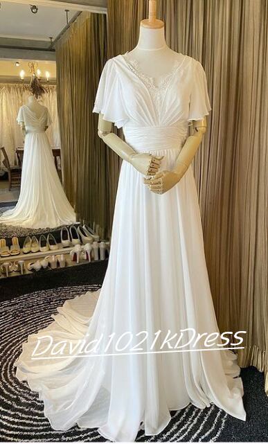 フランス風  ウェディングドレス レース トレーン 前撮り Vネック