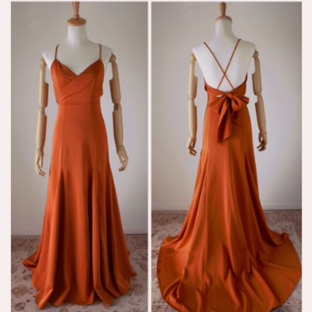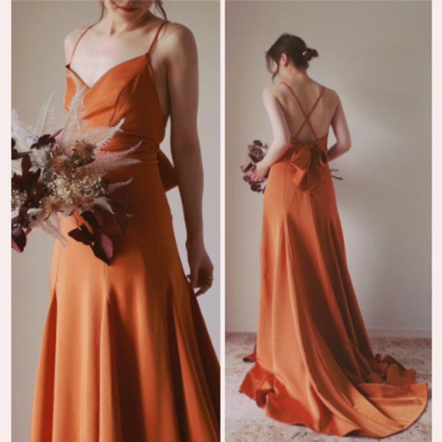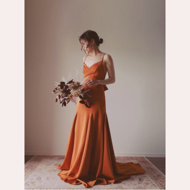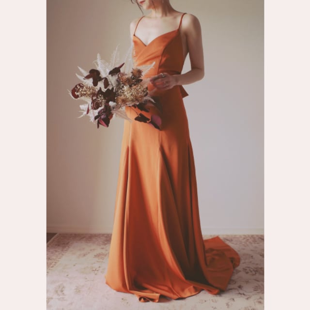テラコッタ色 カラードレス 背中見せ キャミソール 前撮り 挙式ドレス