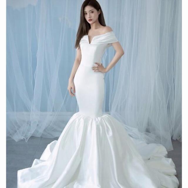 美品! ウエディングドレス ホワイト マーメイドライン オフショルダー 優雅なシ