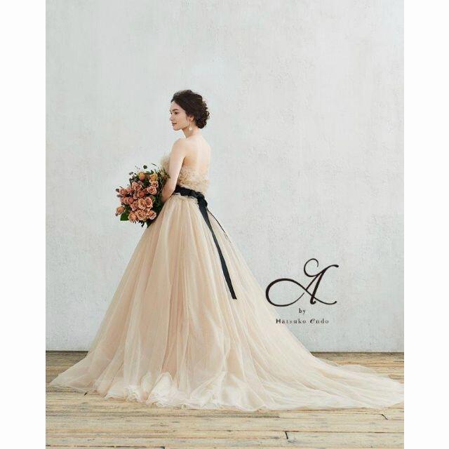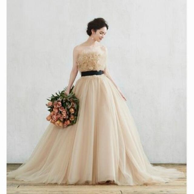 高品質!ベージュ カラードレストレーン ベアトップ サッシュベル