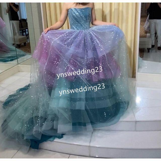 レインボースカート 素敵なカラードレス キラキラチュール ベアトップ 結婚式