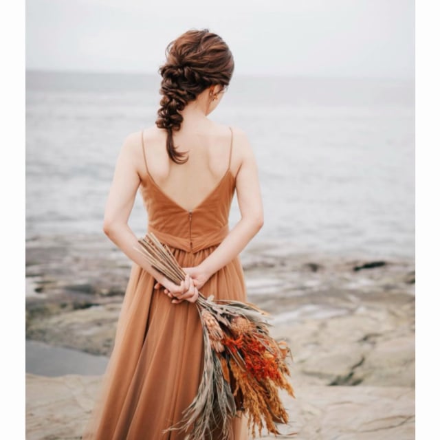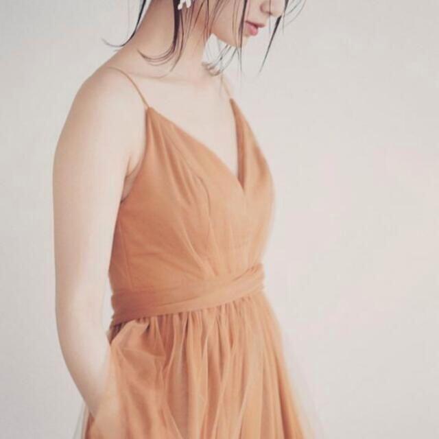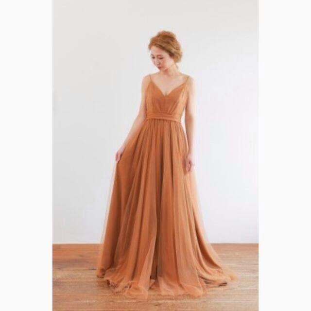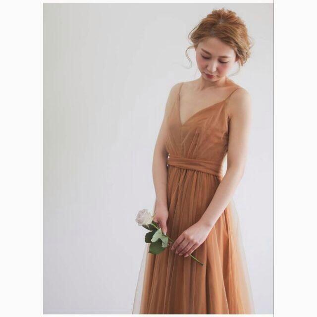 トレンドのテラコッタ色 パーティードレス Vネックドレス キャミソール