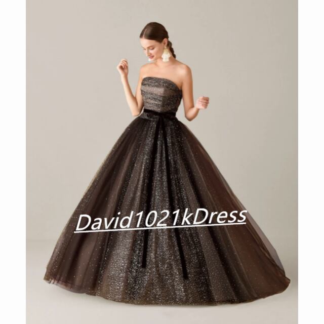 ブラウンカラードレス キラキラチュール ベアトップ 挙式 結婚式