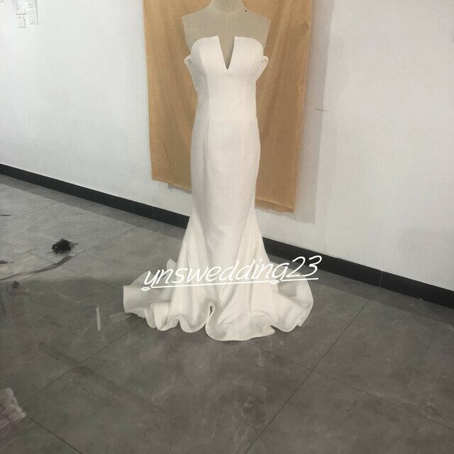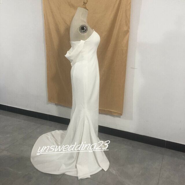 エレガント パーティードレス ホワイト マーメイドライン ベアトップ くるみボタン 二次会