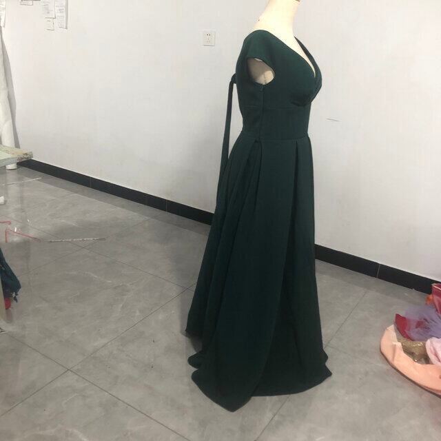 美品! パーティードレス 绿色 スリット トレーン セクシー 深Vネック 細見えシルエット
