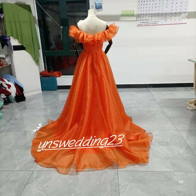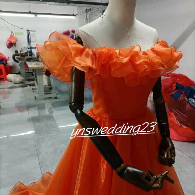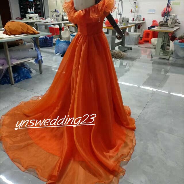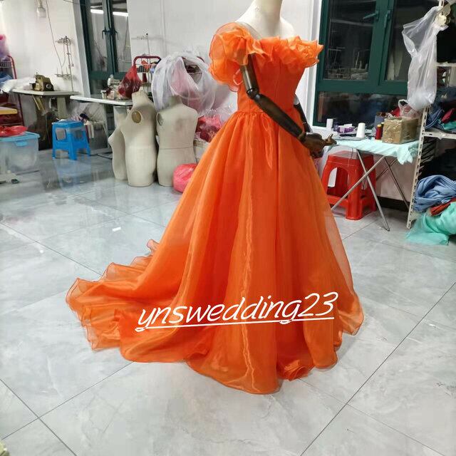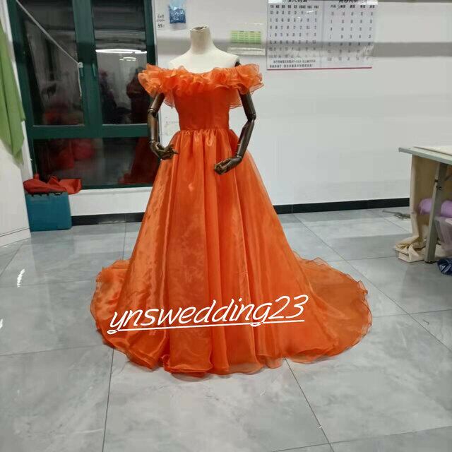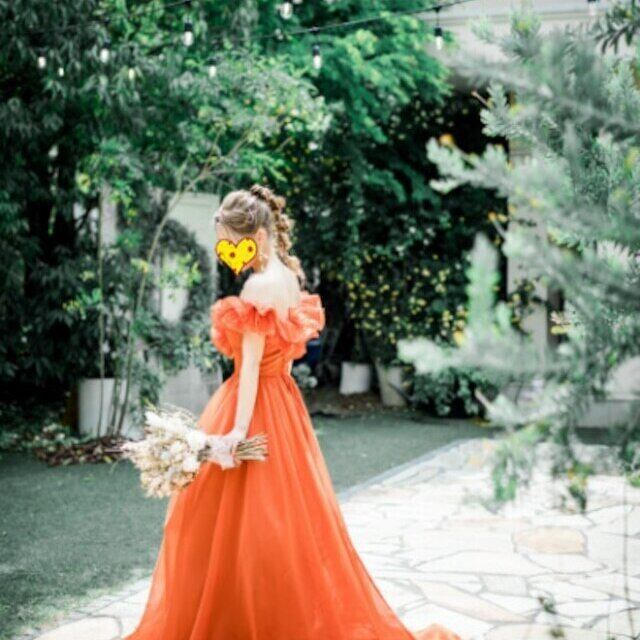 カラードレス オレンジ 結婚式ドレス オフショルダー 2次会 人気