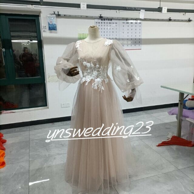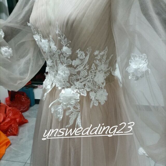 カラードレス アンズの色 前撮り シースルー袖 小花レース 花嫁