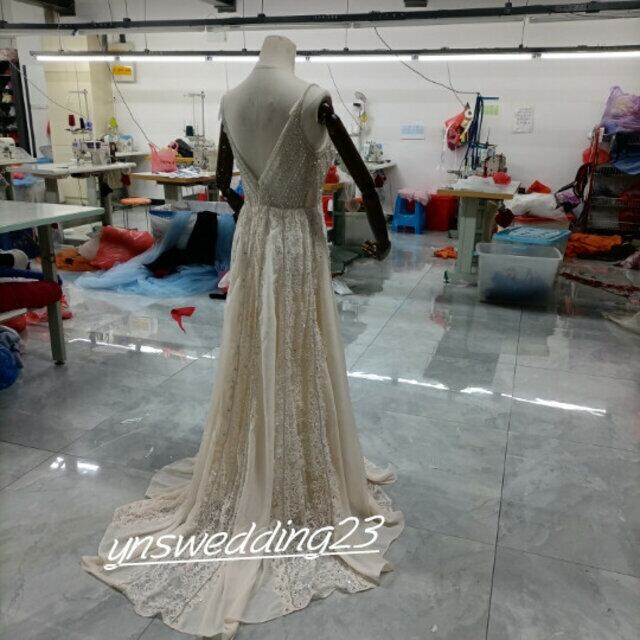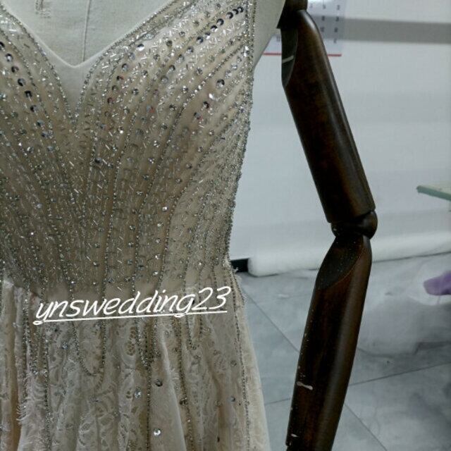 豪華! ビジュードレス 薄シャンパンの色 ウェディングドレス レース ハンドメイド 結婚式/披露宴