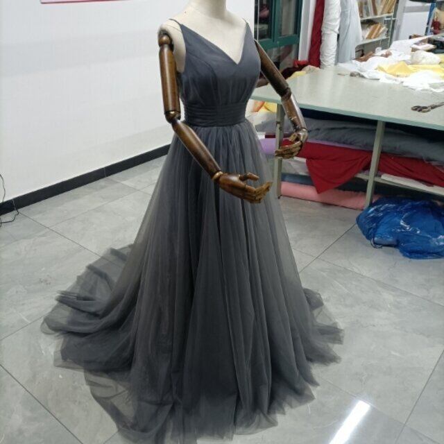 カラードレス グレー ソフトチュール 優雅なシルエット 前撮り 背中見せ