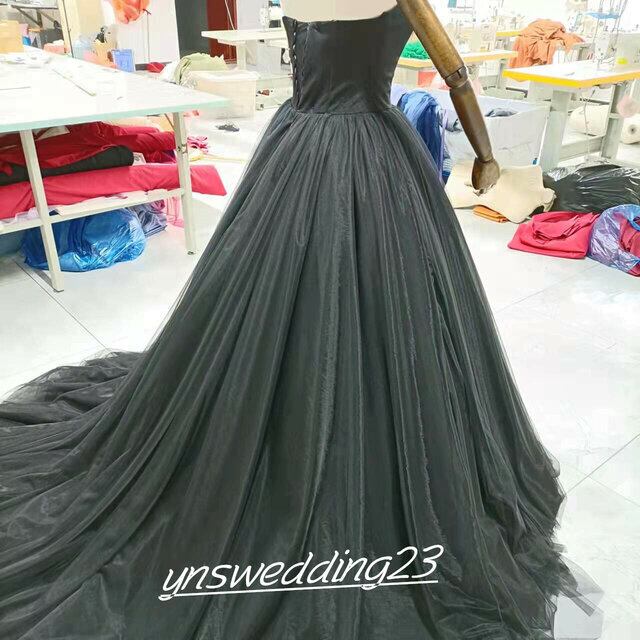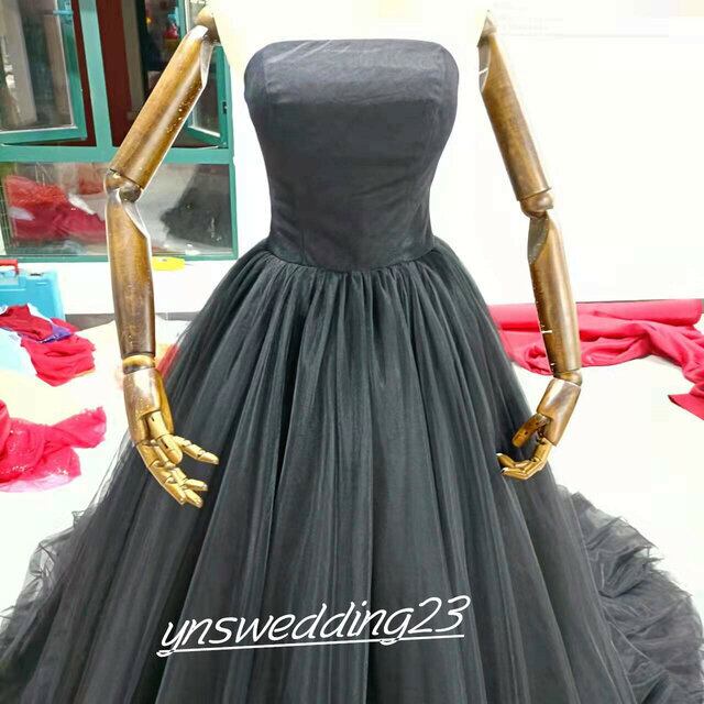 高品質! カラードレス 黑 ソフトチュール ベアトップ トレーン 前撮り 2次会