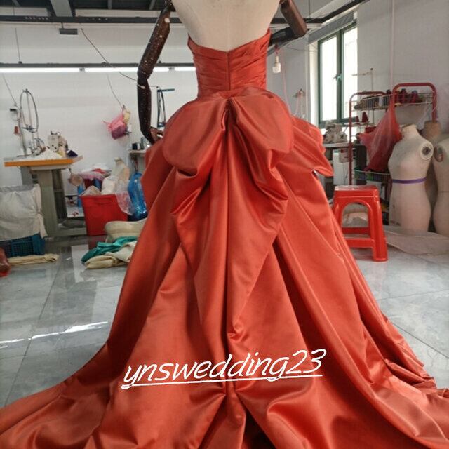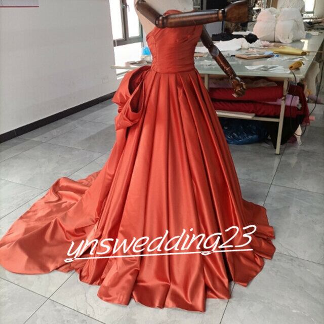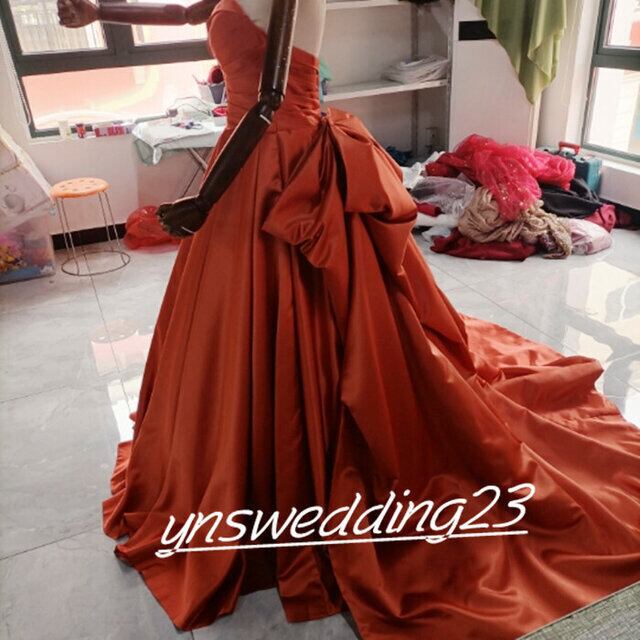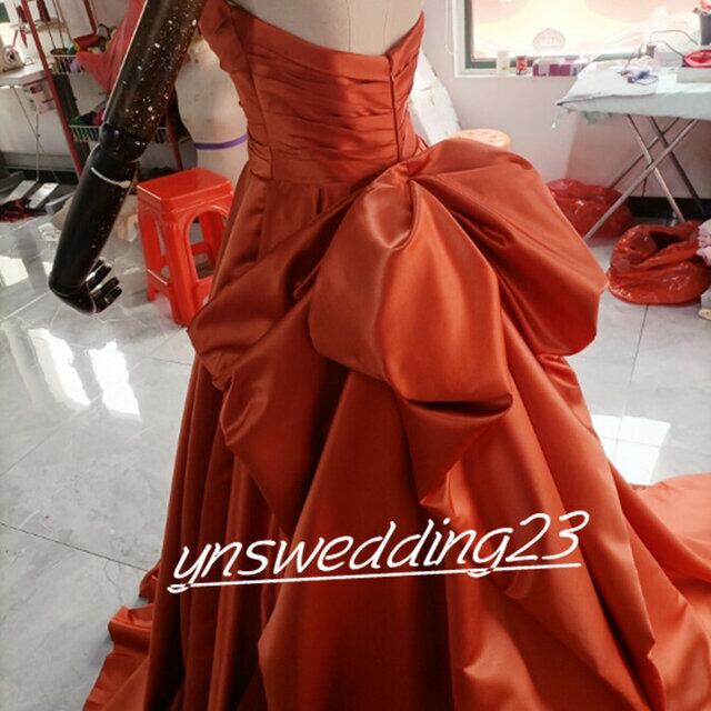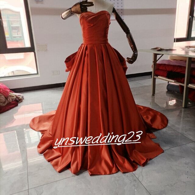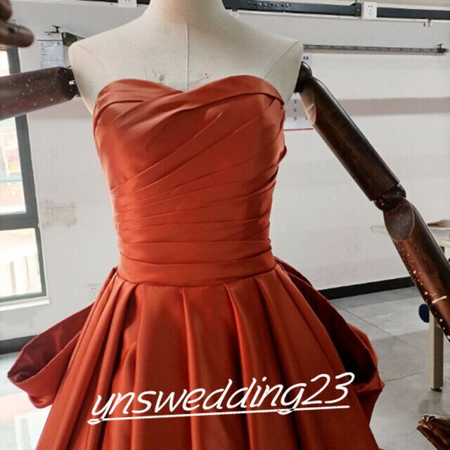 高品質! ウエディングドレス トレンドの テラコッタ色 ベアトップ 二次会 カラードレス