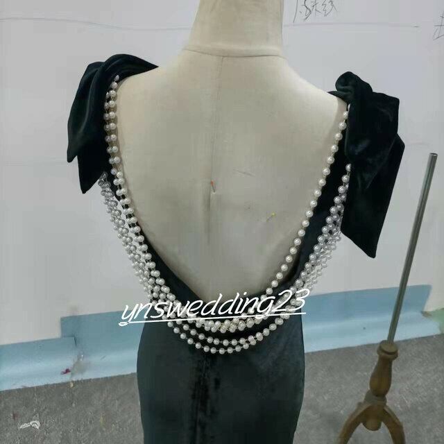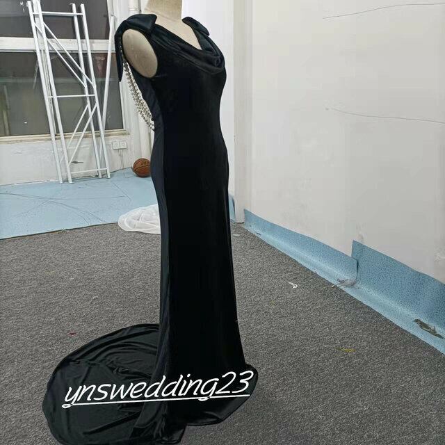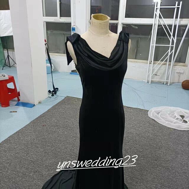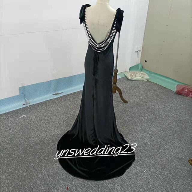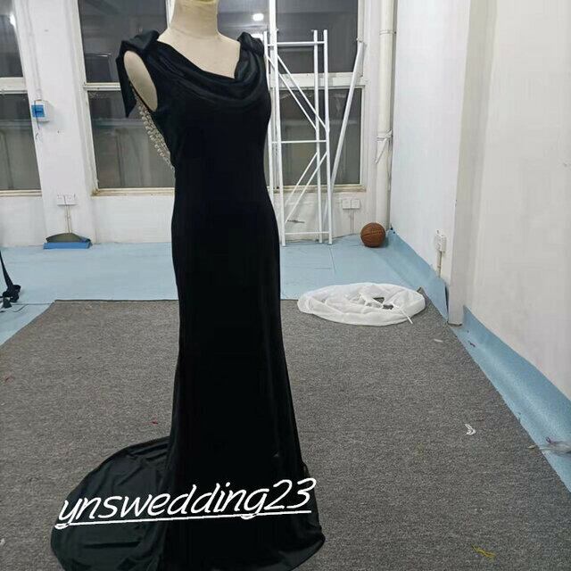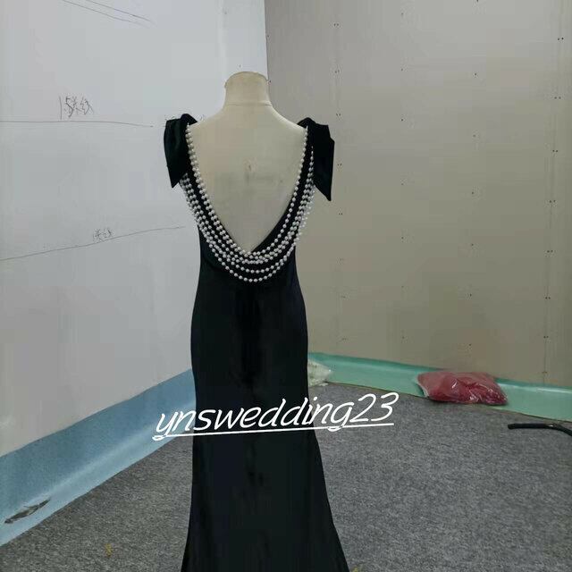 オードリー風!パーティードレス 黒 マーメイドライン 背中見せ シアーな美しさ