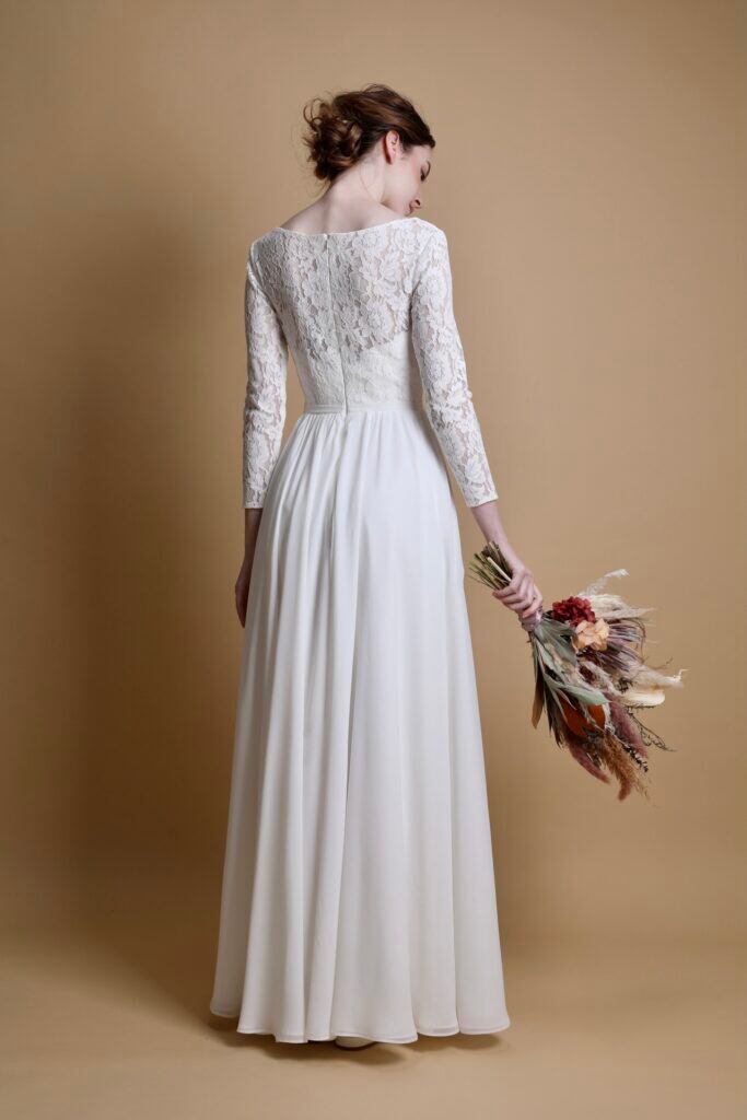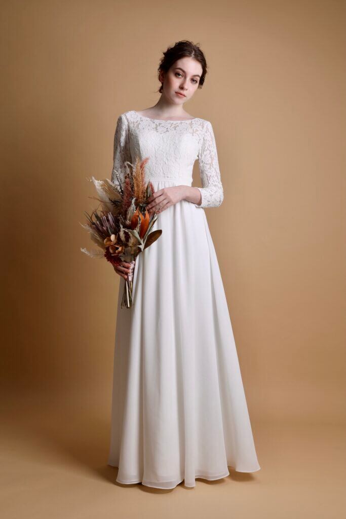 長袖 花柄刺繍 オフホワイト ウエディングドレス ロング丈