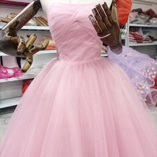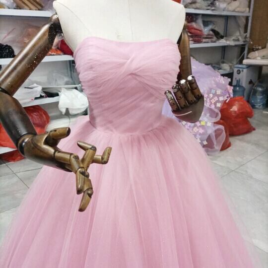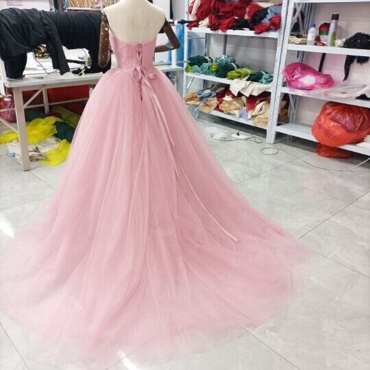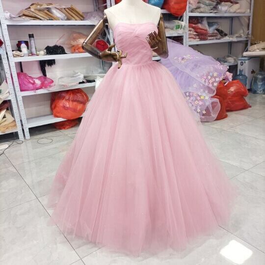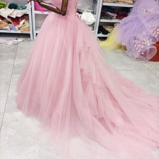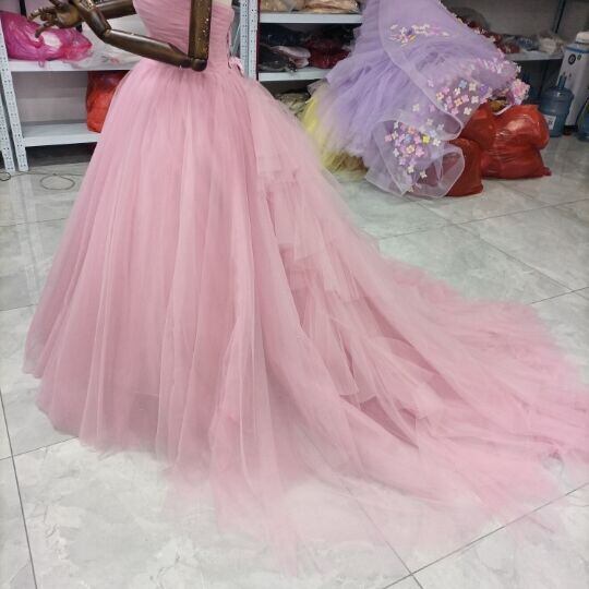 高品質! ソフィアピンクカラードレス ソフトチュール ベアトップトレーン プリンセスライン /結婚式/披露宴/