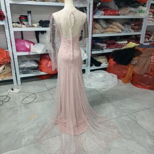 高品質! コーラルピンクカラードレス ピンク 華やか 贅沢 パール ラッパ袖 結婚式/披露宴 2次会