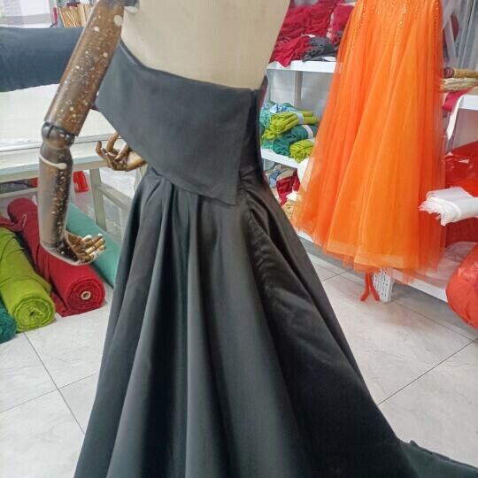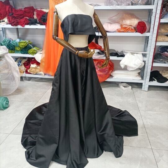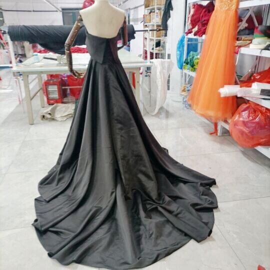 上品!パーティードレス 黒 ベアトップ プリンセスライン トレーンタイプ