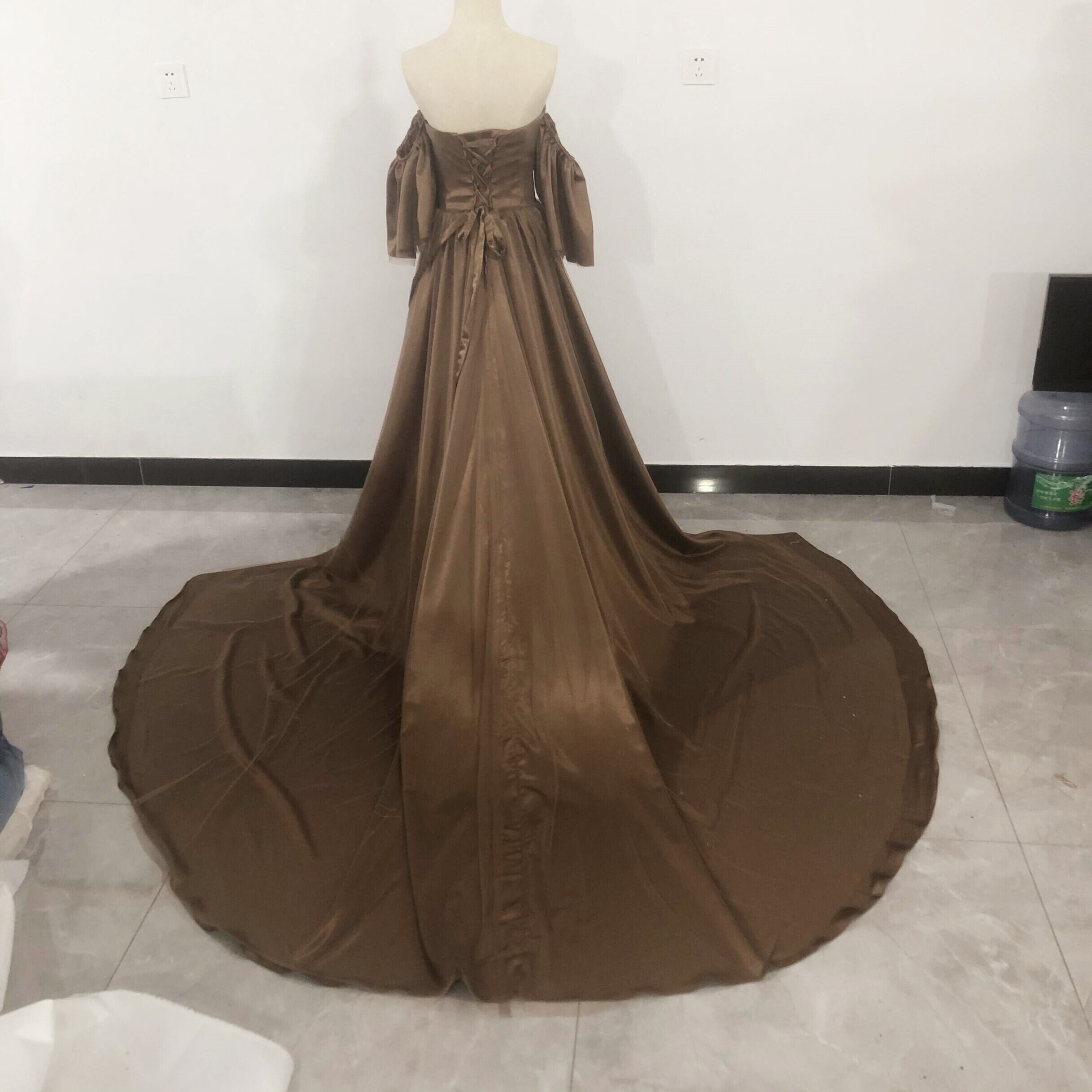 大人気上昇中!高品質!テラコッタ カラードレス 編み上げ 華やかなトレーン プリンセス /結婚式披露/挙式
