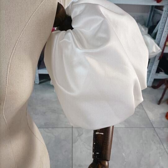 高級サテン 取り外し袖 ホワイト ショルダーの付け袖 パフスリーブ オーダー可能