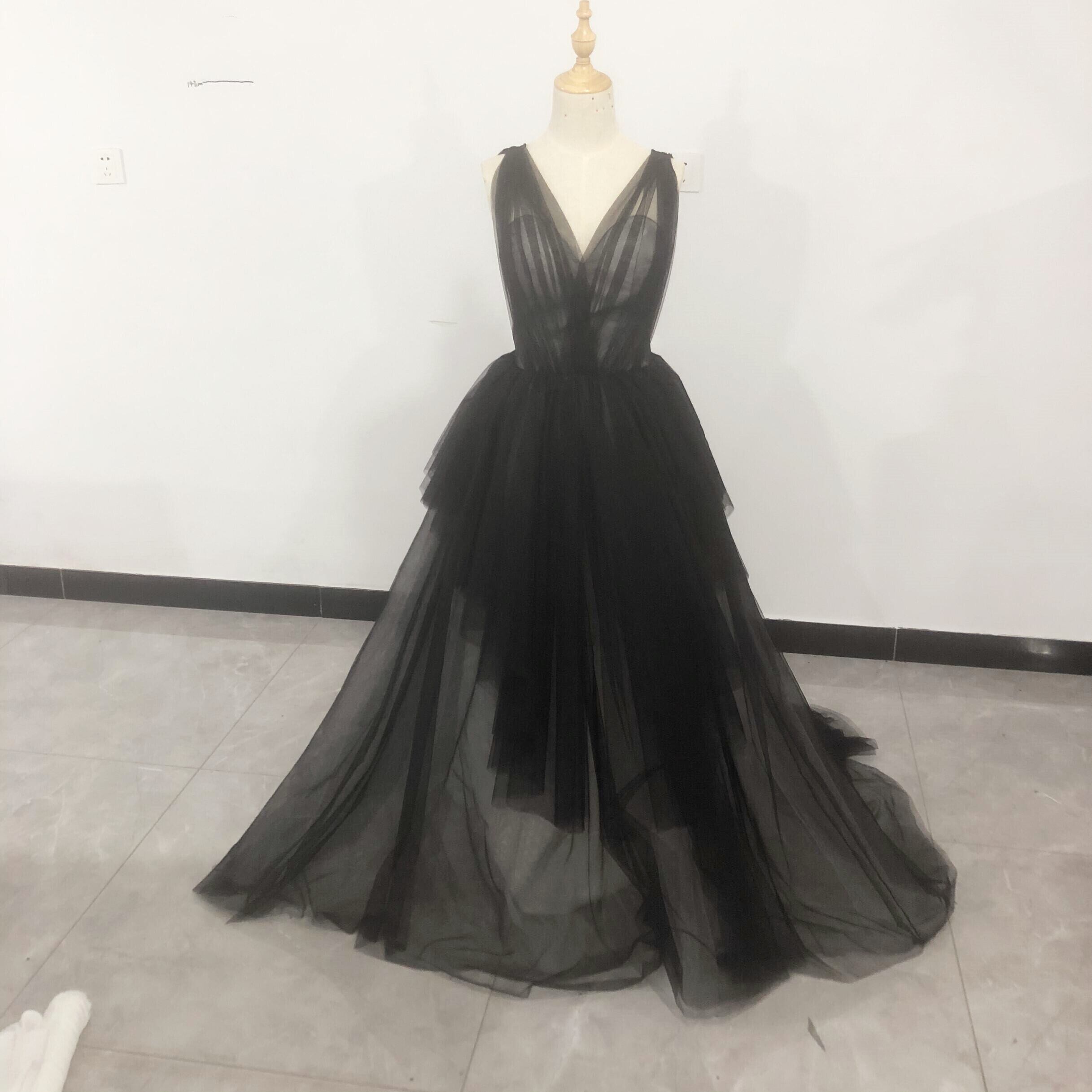 黒のシンプルなドレスオーダー Vネック /音楽会 /2次会/