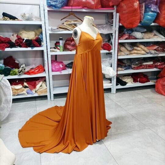 高品質! カラードレス 茶色 オンショルダードレス ロングトレーン パーティドレス マタニティ 二次会