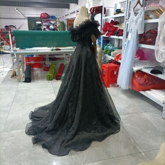 豪華! カラードレス 黑 オフショルダー 人気上昇 2次会 花嫁 ロングトレーン