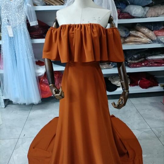 豪華!コーヒーの色 タカラードレス オフショルダー 華やかなトレーン ド プリンセスライ/結婚式/披露宴/