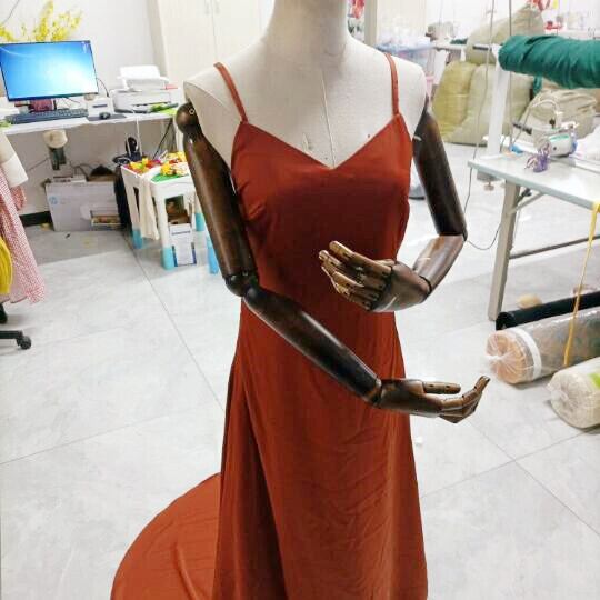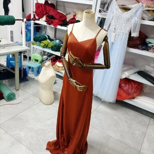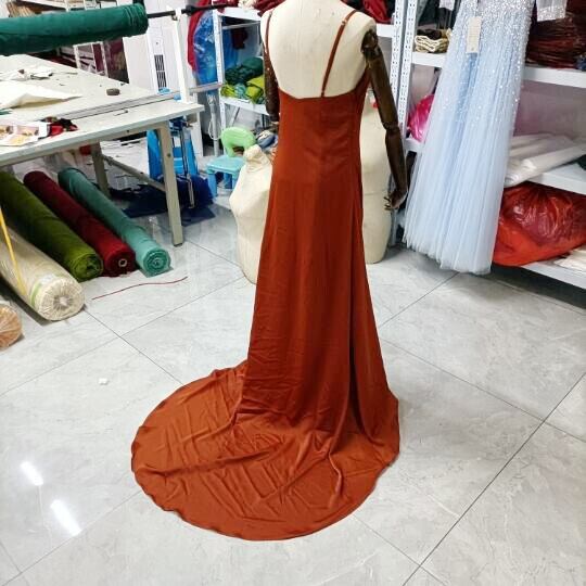 ふんわりシフォン製 テラコッタカラードレス Vネックドレス キャミソール ロングトレーン パーティードレス