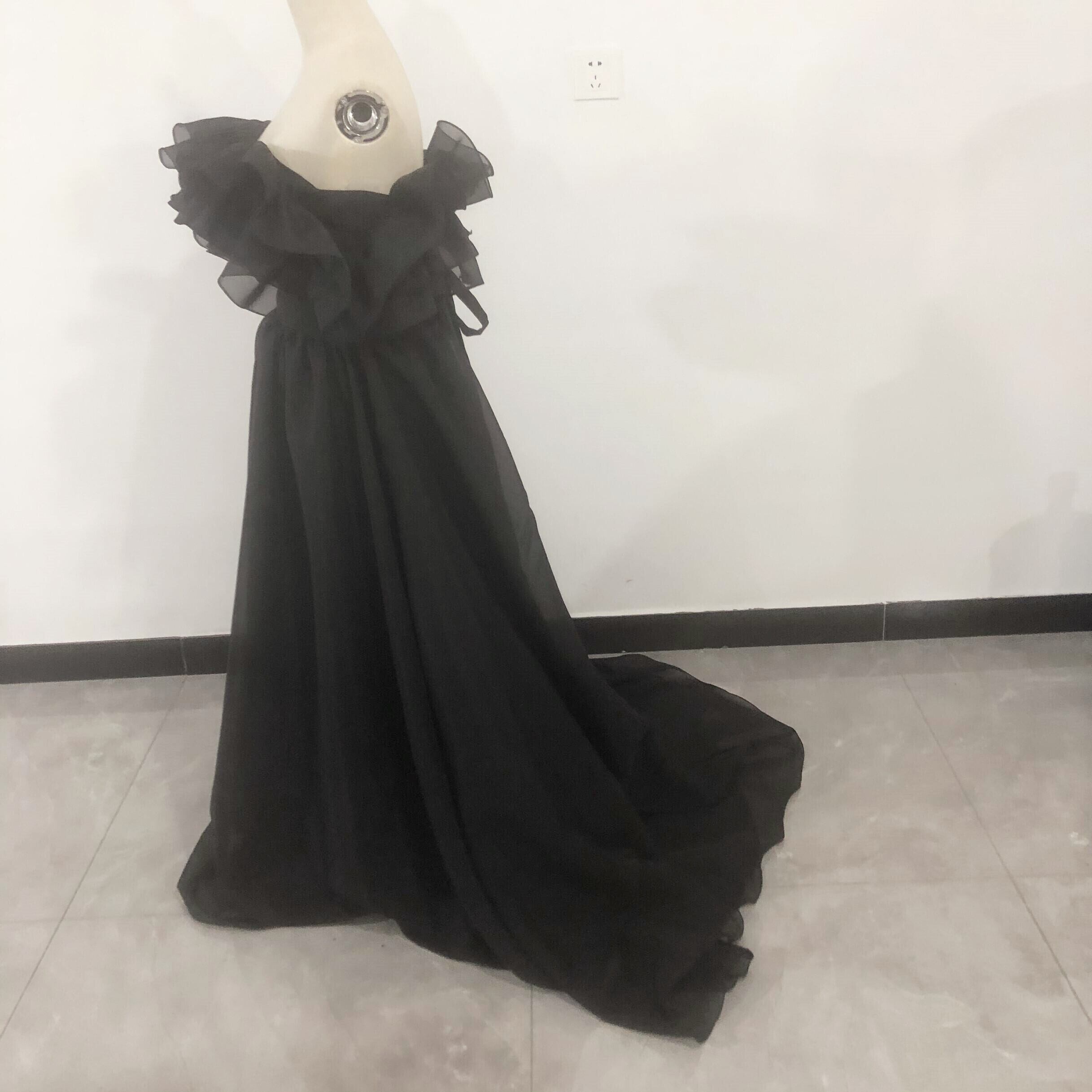 高品質!黒 パーティードレス ロングトレーン /音楽会/発表