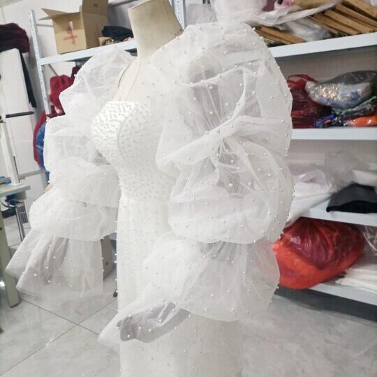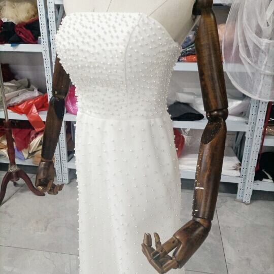 大人気上昇 豪華!ホワイト ウエディングドレス 姫袖 取り外し袖 パール マーメイドライン/結婚式/披露宴/