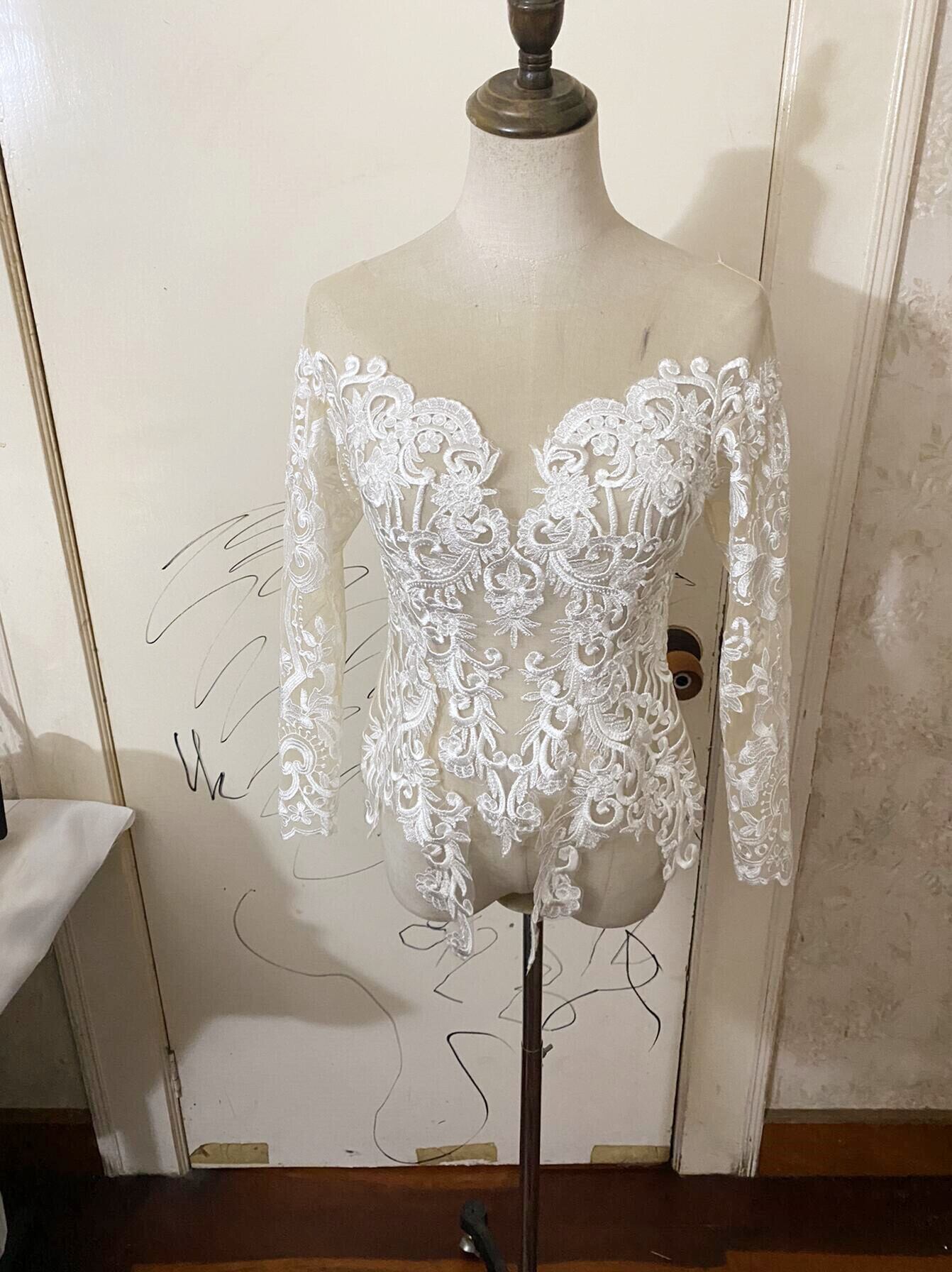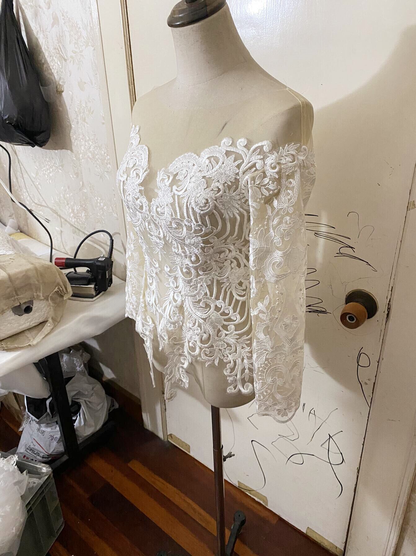 高品質! ウエディングドレス中のボレロ 高級レース 背中見せ 長袖 結婚式 二次会 前撮り