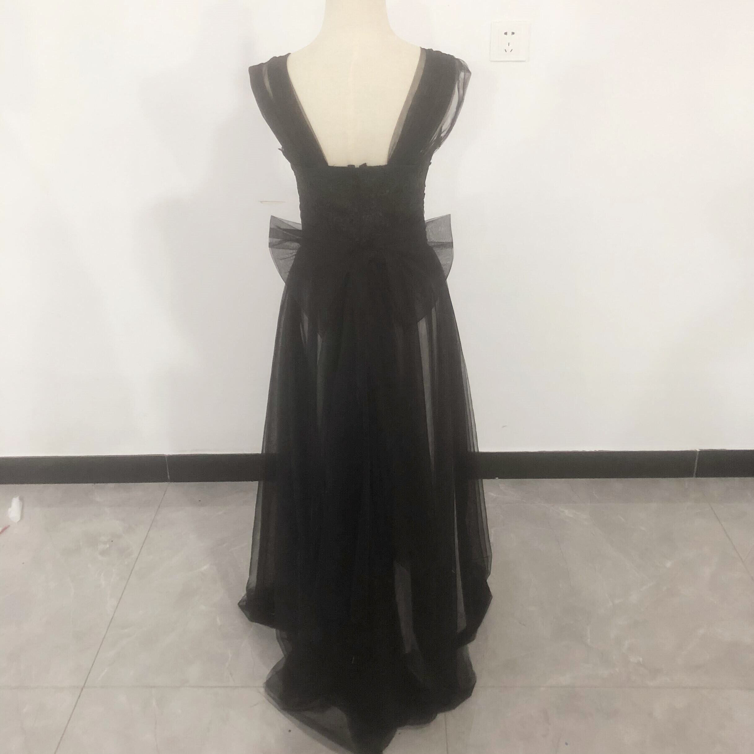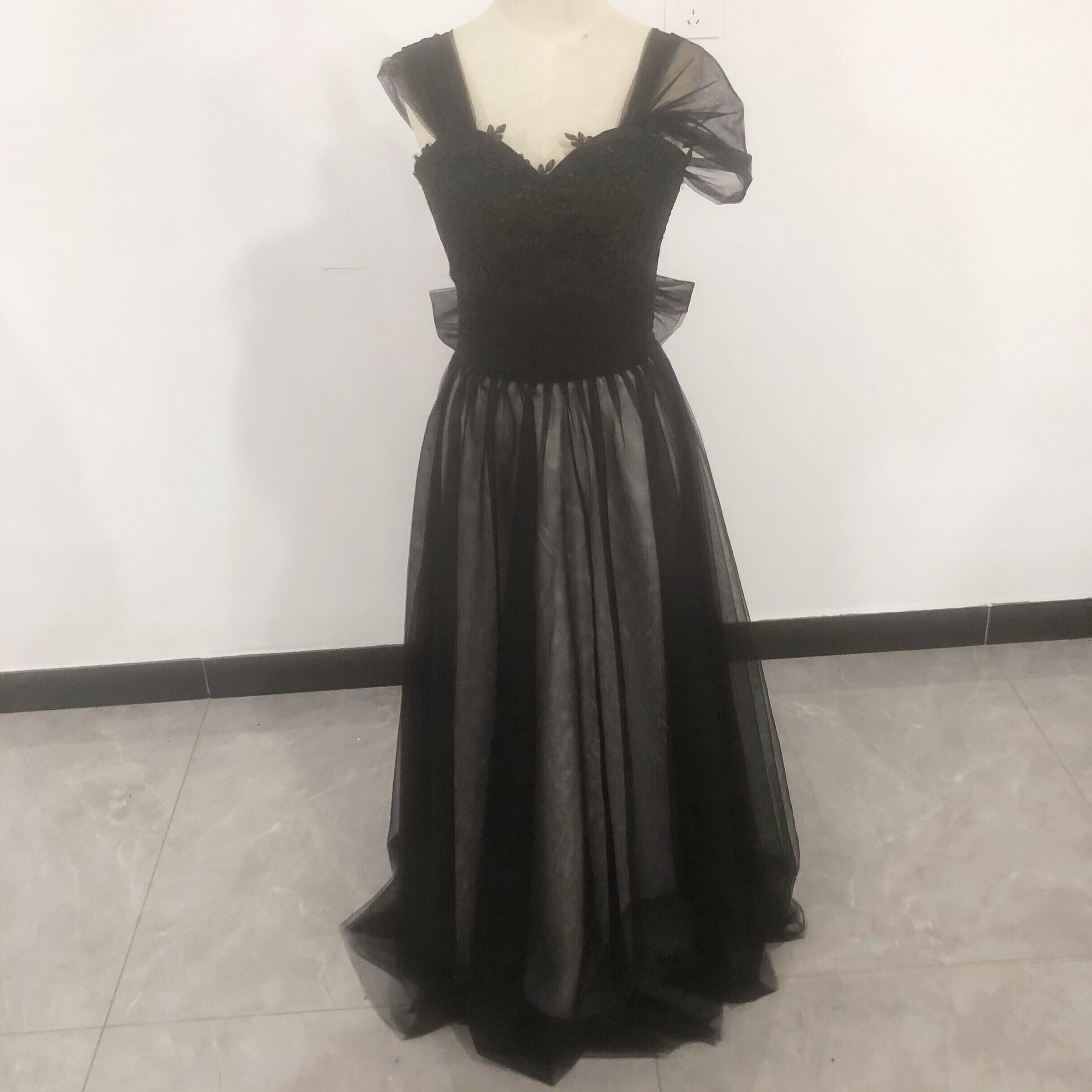 カラードレス 黒 レース Aライン ロング ベアトップ クラシカル ワンピース
